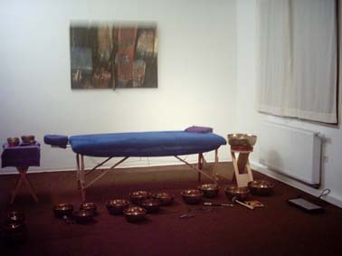 ein intensives Klangerlebniss, die Klangschalen werden um den Körper gestellt, die Vibrationen sind in der Aura spürbar,
